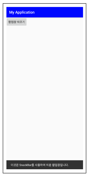 SnackBar를 통해 팝업창을 띄우는 방법은 Toast를 사용하는 방법만큼이나 간단합니다.