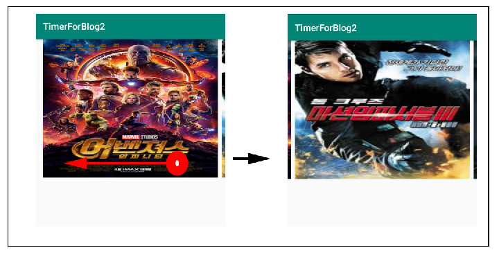 상단에 LinearLayout을 배치하고 그 아래에 ImageView를 배치하여 ViewPager의 각 페이지에 이미지를 표현하도록 구현하였습니다.