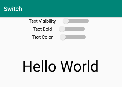 ▼ 레이아웃 형태는 ConstraintLayout 아래에 Switch 3개와 TextView 한 개를 배치하였습니다. 각 Switch는 하단에 표시되는 TextView의 Style 및 Visibility에 대한 Option을 제어하도록 구현할 것입니다.